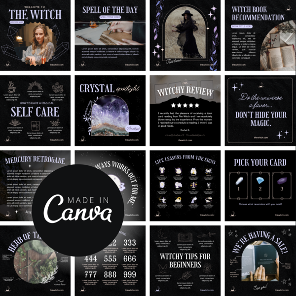 The Witch | Black Mystical Magic Witch Social Media Template Set on Canva for Instagram and Facebook Posts