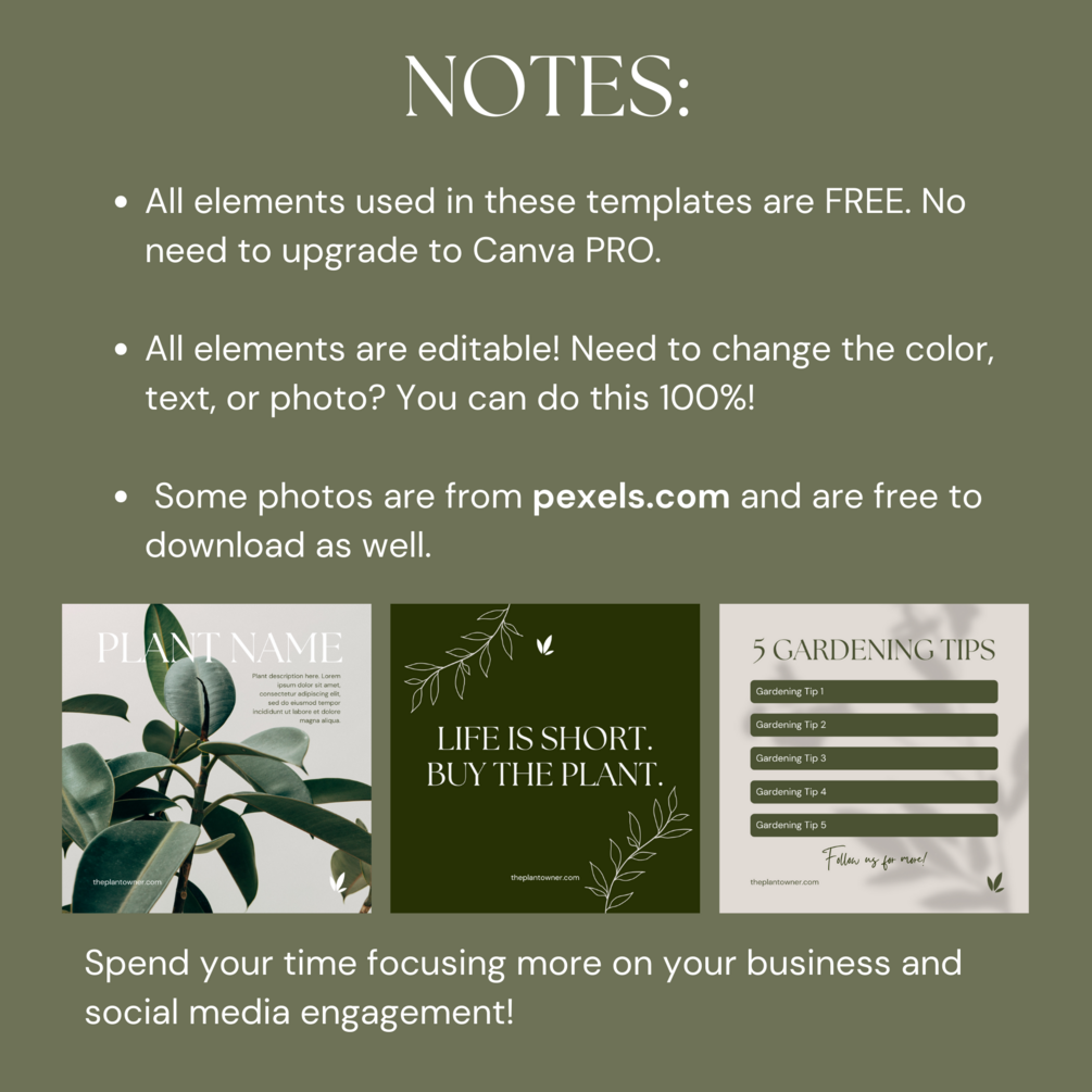 This social media template set is designed specifically for plant business owners who want to elevate their online presence with a tropical and plant-based aesthetic. But since these templates are 100% editable and all elements are free, you can utilize these designs no matter what industry you're in!