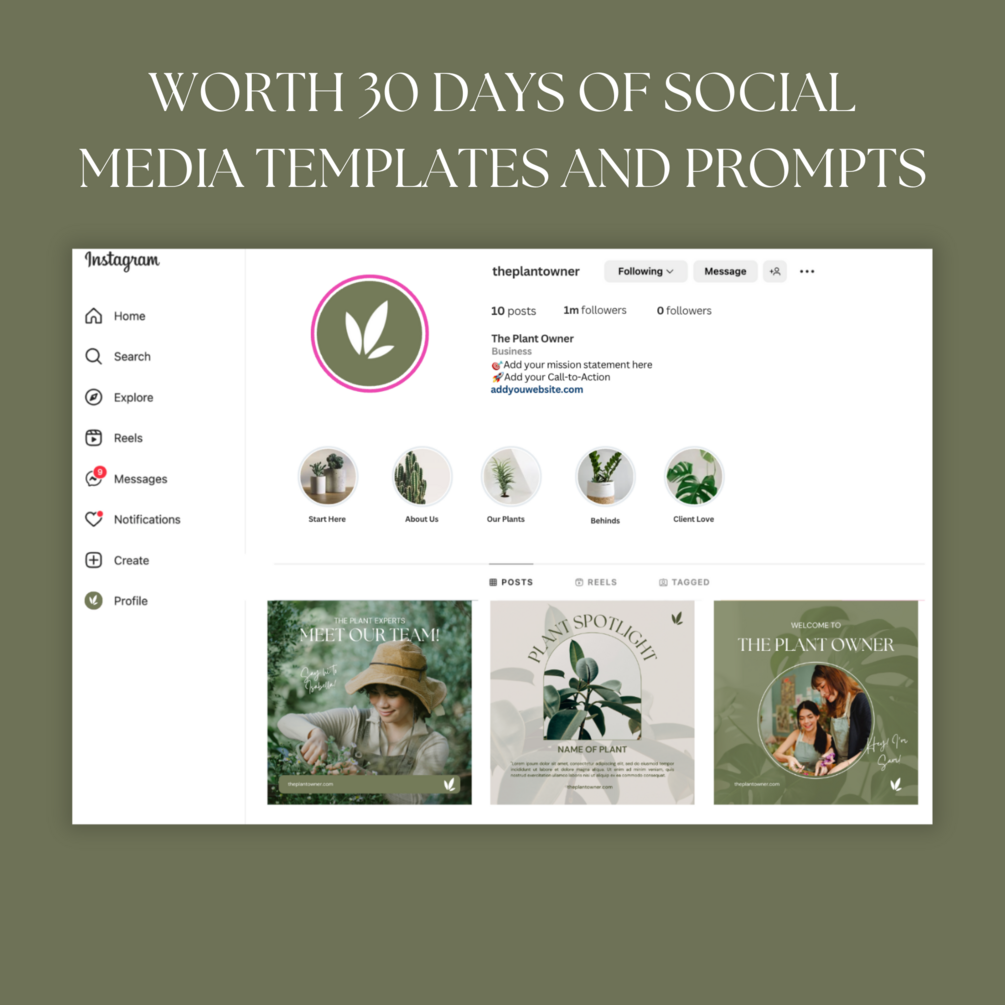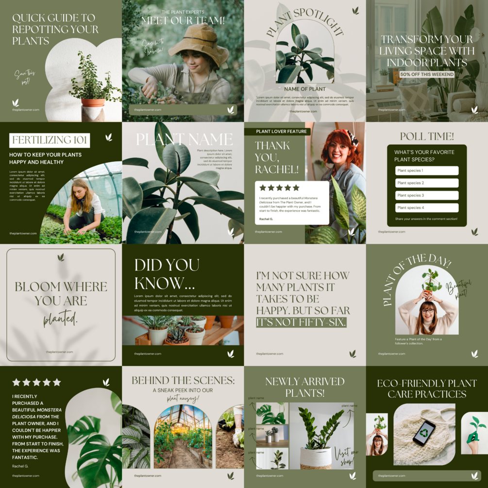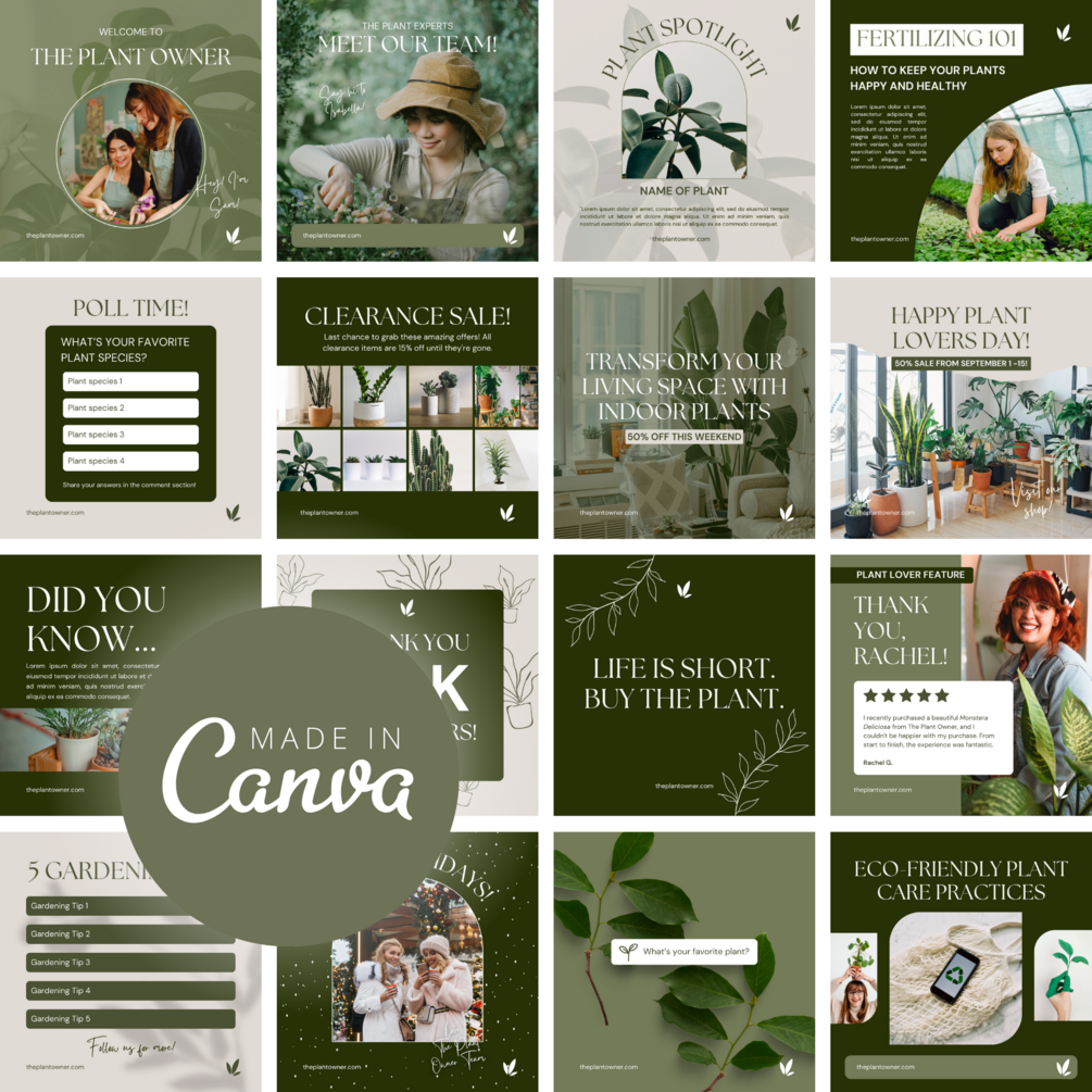 The Plant Owner | Sage Green Social Media Template Set on Canva for Instagram and Facebook Posts