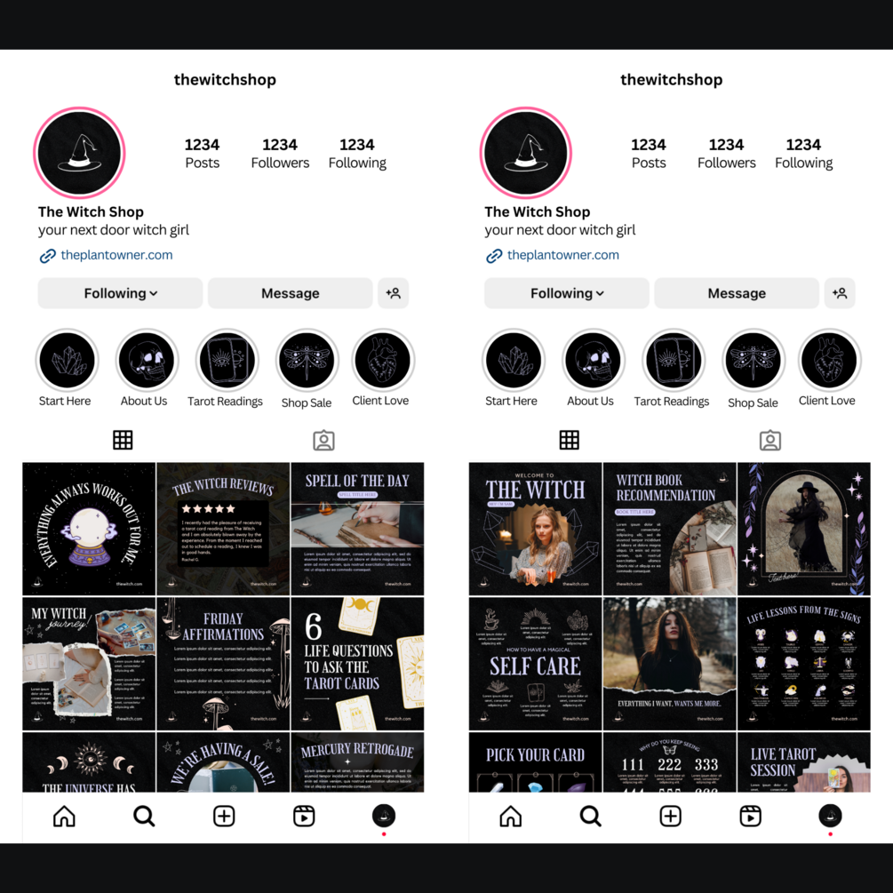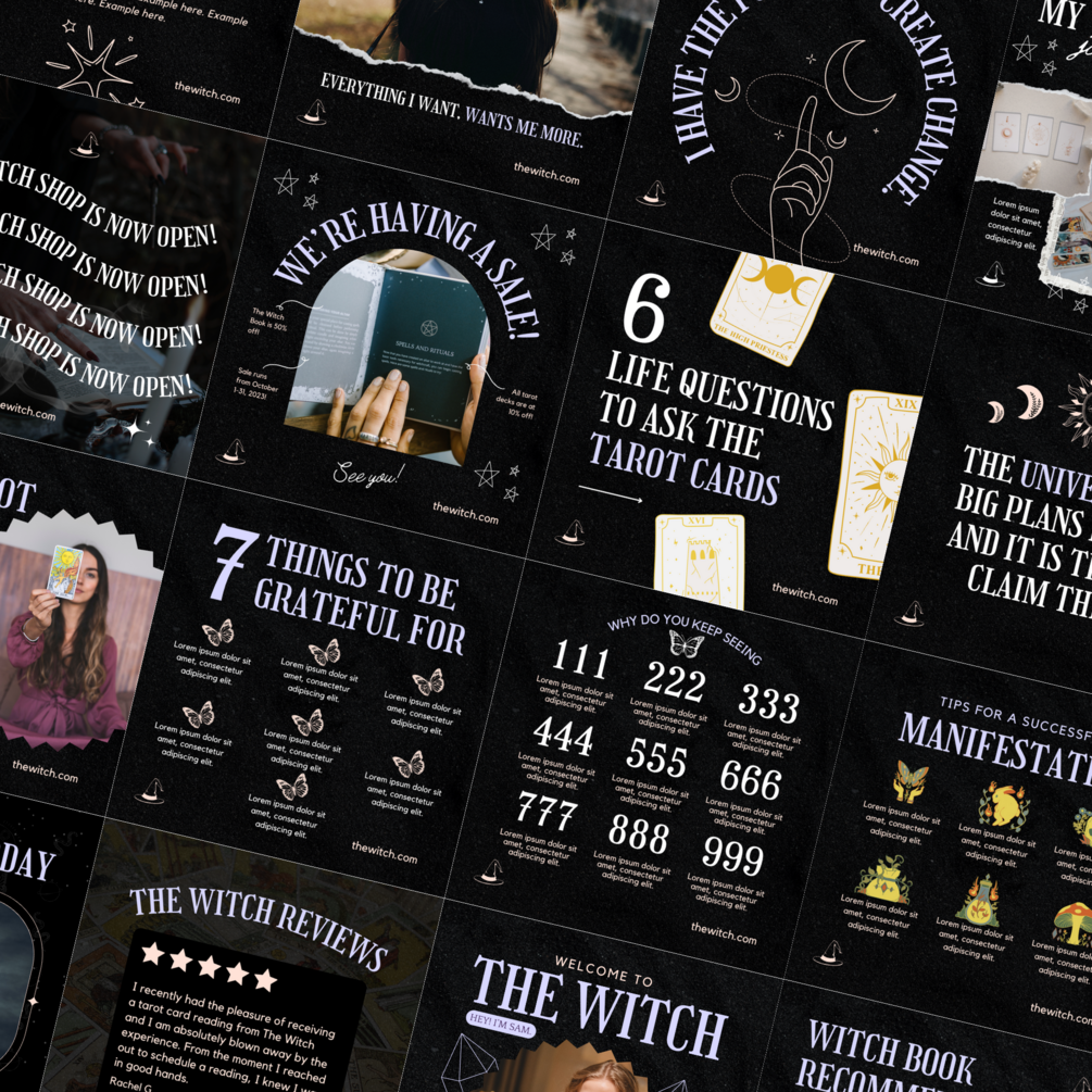 Unleash the mystical potential of your witchy business with our enchanting social media templates. Dive into a world where every post is a spellbinding journey, capturing the essence of your magical offerings.